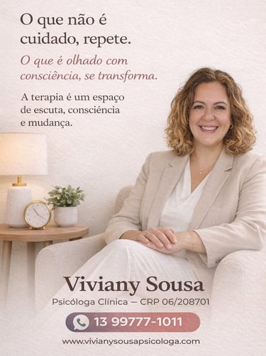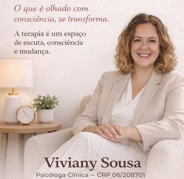 Viviany Sousa é psicóloga clínica e escritora, Pós graduada em Neuropsicologia, com ênfase em avaliação neuropsicológica, e graduanda em Neurociência, Comportamento e Psicopatologia. Com formação complementar nas áreas de Autismo e comorbidades, Terapia do esquema aplicada à dinâmica do casal e às necessidades emocionais, além de capacitação em Paralisia Cerebral e ensino de habilidades básicas.